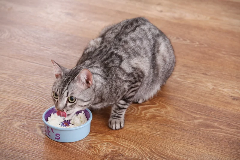 Кошка ест.