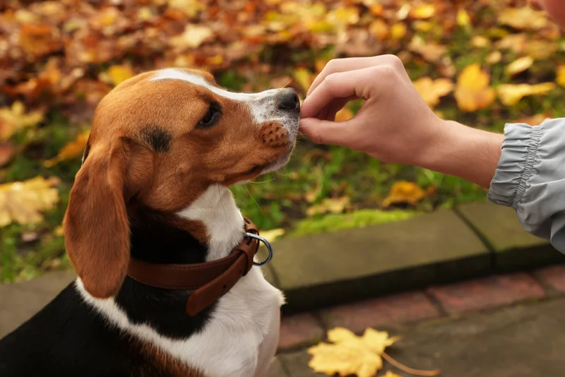 Награды за хорошее поведение: Носите с собой лакомства и поощряйте собаку за каждый шаг рядом с вами на расслабленном поводке.