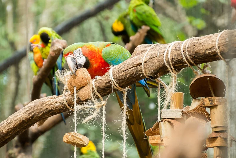Создайте для вашего попугая игровую площадку вне клетки. Используйте лестницы, канаты и качели, чтобы создать увлекательное пространство для игры и исследований.