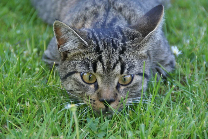 Кошка притаилась в траве. Источник фото: rupixel.ru