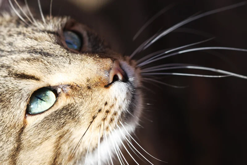 Кошка не видит цветов и не различает движений так же, как мы. Вблизи она очень плохо видит. Зато тут вступают в свои права усы, вибриссы, которые помогают их обладателю определять расстояния до предмета.