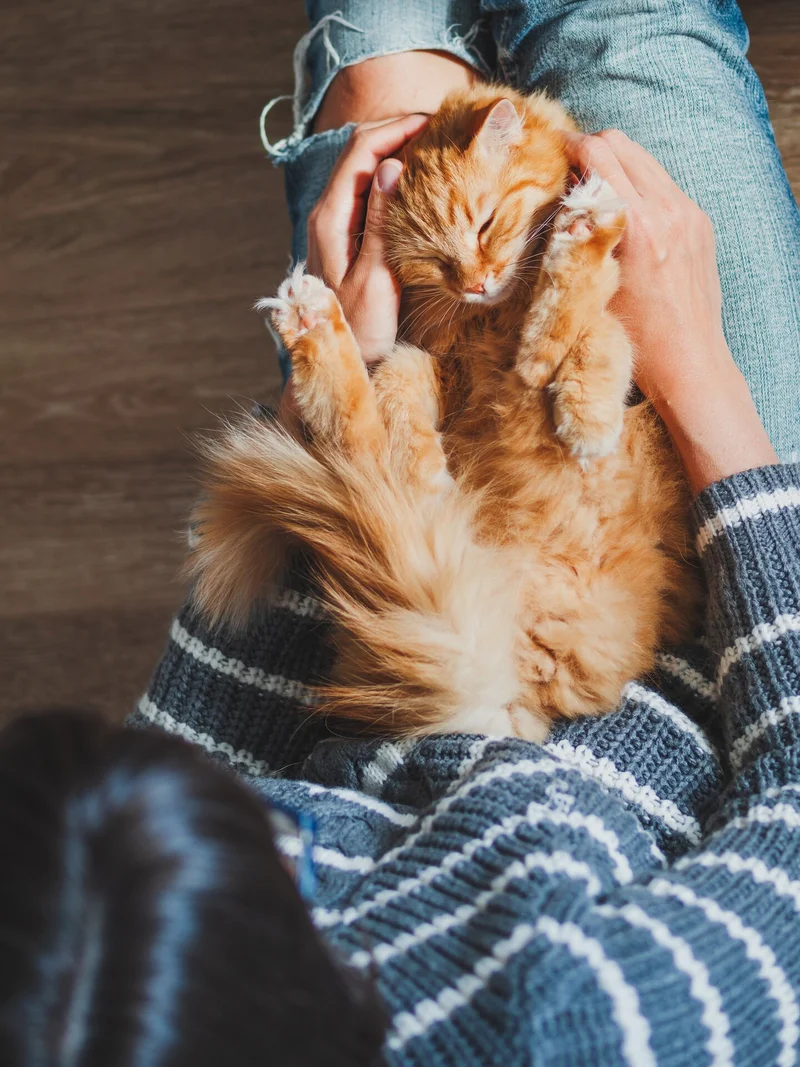 Кошка спит на руках хозяйки. Источник фото: 123rf.com