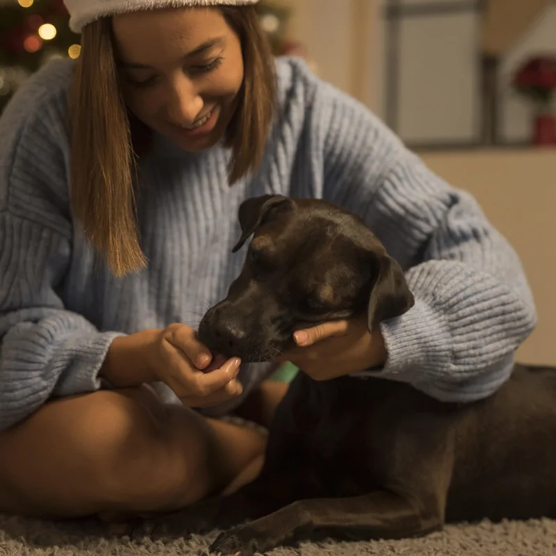 Собака облизывает руки хозяйки. Источник фото: Freepik.com
