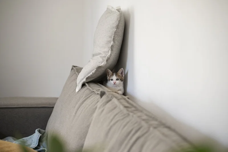 Котенок спрятался за диваном. Источник фото: freepik.com