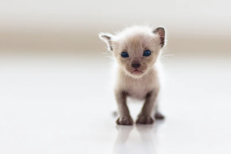 Сиамские кошки рождаются полностью белыми. Цвета появляются примерно на второй неделе жизни. Они темнеют с возрастом и, что интересно, с понижением температуры. Чем холоднее части тела, тем интенсивнее будут признаки. Шерсть сначала отрастает до основного цвета, затем темнеет.