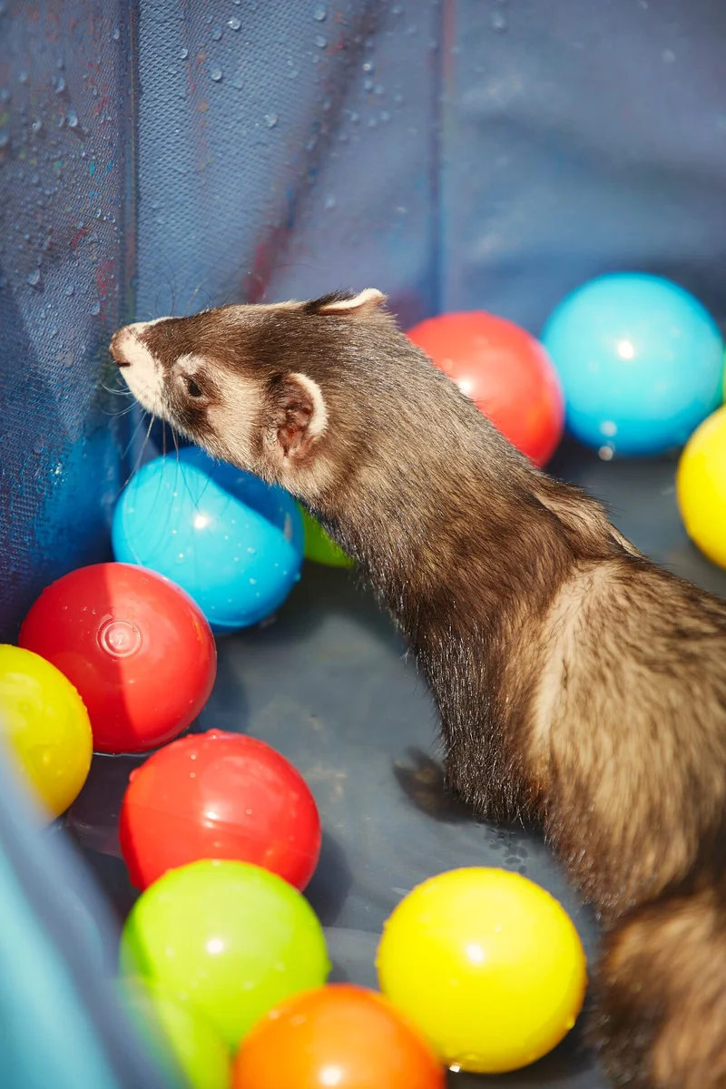 Хорек в бассейне с мячиками. Источник фото: 123rf.com